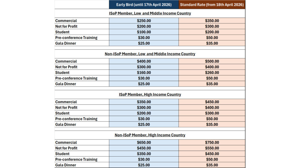 Non-member rates include one-year ISoP membership (will be activated one month after the conference)